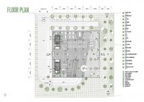 While the current site implies conventional "fronts" facing streets, a landscape corridor that branches away from the streets is introduced to the project, creating an unconventional pedestrian-only main entrance.