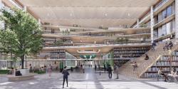 The idea of extending the green belt into the public landscape realm is further elaborated in the main public space of the building, with the landscape growing into the glazed public space and blurring boundaries between outside-inside, public-private, and interactive-quiet.