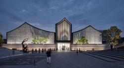 Green Vine Square is a transitional public space connecting the Museum and the Green Vine Study. It "lifts up" two herringbone slopes on the east and west sides respectively: the west side is slightly raised to enclose the square, while the east side is slightly higher. With the help of partial sinking, the volume of the visitor center is skillfully hidden under the herringbone slopes, serving to distribute crowd. From Green Vine Study via Green Vine Square, the sight line and flow line lead to the Museum.