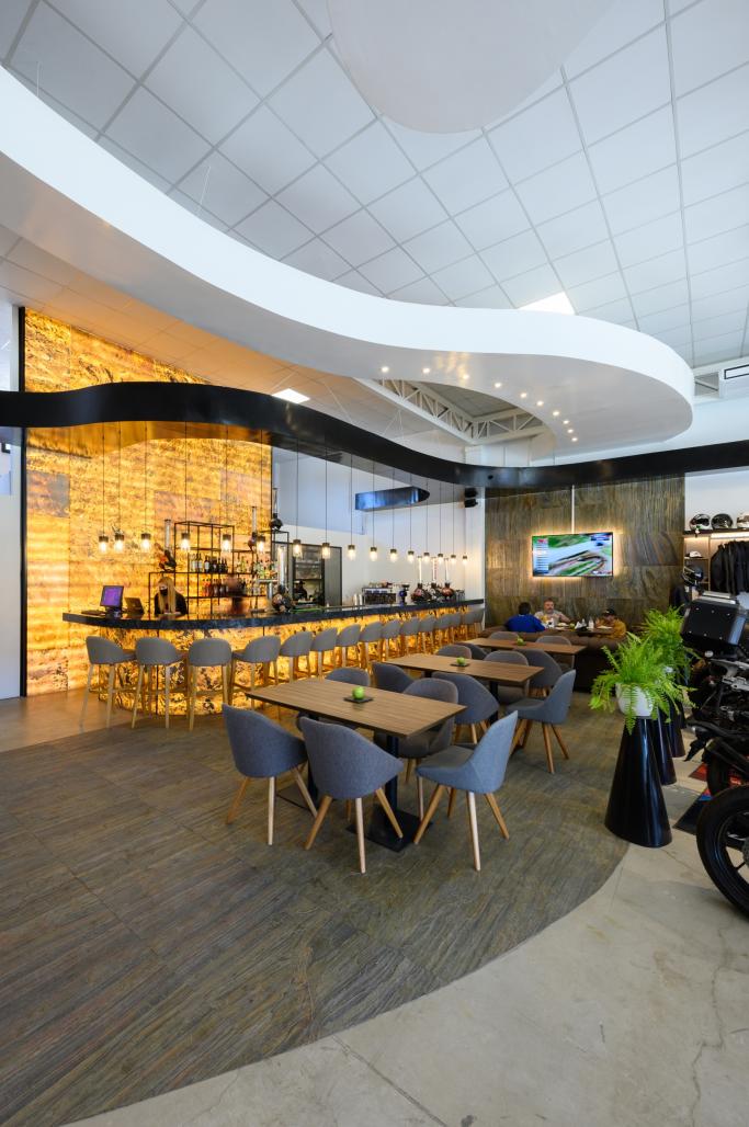 In a renovated area of the city of Villa Carlos Paz, located a few meters from the downtown area and on one of the main arteries of the city, the challenge of designing a motorcycle dealership linked to gastronomy was carried out, transforming it into a large showroom of 300 m2. The challenge not only consisted in the articulation of these activities, but the space had to become a provincial and national point of reference as a meeting place for both motorcyclists and the sector of society that lives in the vicinity and proximity of the city zone.