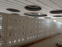 8 round spaces are designed around a main circle on the ceiling. 8 spaces point to 8 different doors of paradise in lslamic belief. The space in the middle and the 8 spaces around it also indicate the points where the chandeliers in the ceiling lighting are located.