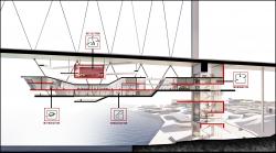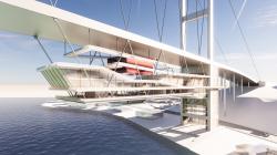 A Transnational community center articulated over the Bosphorus Bridge, aiming to create the intersection of publicity between the voids generated by the deck and the pylons with the steel structural system that works together with the existed bridge structure.