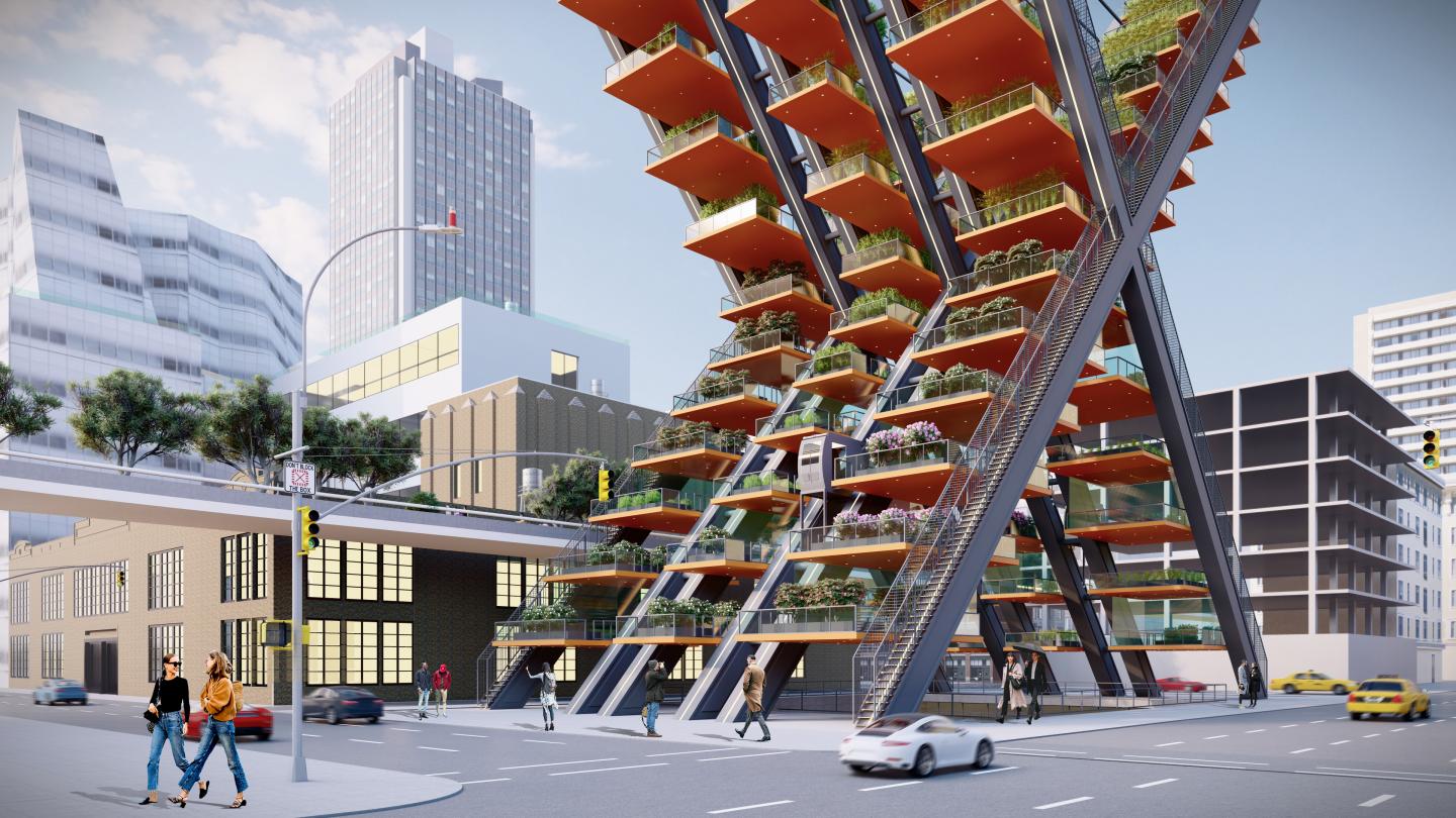 Places first in the 25-meter studio apartment with terrace were placed.It is designed from the ground terracing down 3 levels the volume of the main dwelling. There is up to 50 meters from 25 meters outdoor terraces only for agricultural production.Rainwater is used in the most efficient manner.Reaches into housing filtered down from the terrace, rain from above.Each terrace accessible by elevator.Located in the head by a structure designed for emergency stairs are located on the inclined beam.While agricultural production in history with reference to the vertical structure of the building also offers an impressive symbol of the city. Aims to draw attention to agricultural production should also thanks to the impressive structure.