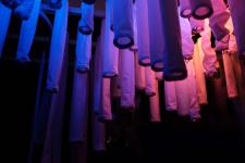 Here, space is filled with a forest of cylindrical fabric shrouds that suspend from the ceiling. Upon sensing the presence of an occupant, using a programmable material (shape-memory-alloy), the shrouds begin to fluctuate, expanding and contracting the volume of the space in rhythm and sequence. Embedded within each shroud is an LED that activates with a breathing rhythm synced with the actuation of the SMA. The shrouds are arranged to create a distinct spatial progression and bring forth a heightened perception of scale and awareness of oneself within the space. The atmospheric qualities of the space are determined by the occupant’s emotions detected in real-time using smart wearable (a smart watch and Open BCI EEG headset) and affective computing algorithms developed by our team. This system translates a set of biometrics (e.g. heart rate, skin electricity, blood volume, and temperature) into emotional categories and changes the shape, light, and color of the space accordingly to moderate the emotion. If stress is detected, space begins to morph; the ceiling rises and expands the interior volume, colors brighten and natural air is introduced, and in the process, an empathetic bond is formed between host and occupant. Wisterias uses real-time emotions from neurophysiological data as the agent of change in the environment.