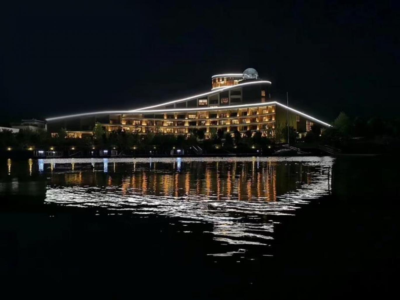 The project is located in Qinglong lake of Fang Shan, the southwest suburbia of Beijing. The site is facing to the lake and back to the mountain. As a boutique hotel that should be rather different from centralized grand hotel, we put the customer’s experience of the space in circulation into our mind to be the dominant element of the design. The single side landscape condition asks us to leave the view side as long as possible to the guest room, and we use an enclosed courtyard as the main entrance of the hotel. The elevation consists of two rather different skins, and unified by a huge planted curved roof, which is like a lifted carpet from earth, containing function massing flexibly. Here, again, the roof becomes an organizing substrate that coordinates all elements. The skin of courtyard is made of brick while the exterior skin facing the lake is made of curtain wall, the sudden contrast between inside and outside makes a dramatic locus of this boutique hotel. The intersected line of the curved roof and the wall gives hotel a vivid skyline. There are only 66 guest rooms with a broad landscape view in 20000m2 area, so the scale of the room is big and comfortable, and gives guest a wonderful experience.
