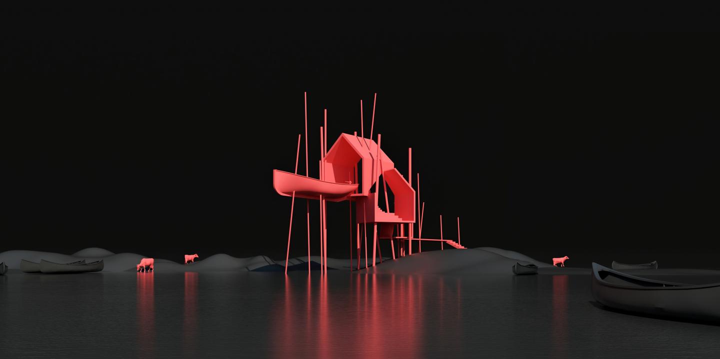 These communities, which are along the Kopai river, are primarily related to fishing. And the important crux of the design was to reflect their needs and suitability as a desired outcome of the design. The idea was to dedicate the pavilion to the daily hardship of the fishing community, addressing the daily routine of a fisherman's life and how the confluence of the river and the land cater to the daily needs of the fishing community.