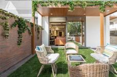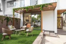 The front garden is basically an extension of the living room. With a beautiful sitting and a few potted plants with brick-cladding walls, this space seems like the most intimate place to have the evening coffee on a rainy day.