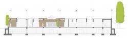 Ground floor spaces are divided into three sections based on their function: management, staff, and exhibition. By anticipating the courtyard in the middle and splitting the building into two floors, it was possible to separate the management department from the staff. Creating openings in the horizontal access corridor made it possible to locate the exhibition spaces.