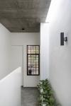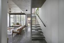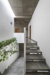 Internally, the staircase and its pared back, almost visceral ‘poured concrete’ design, is cocooned by wall-like screen panel handrail design, ensuring visual privacy for the stairs. The stairwell also has an ethereal ambience to it on account of the various embedded openings allowing for easy penetration and flow of light, air, and sounds.