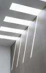 In contrast to this, the terracotta louvers screening the balconies to two bedrooms on the first floor, add a splash of warmth and visual interest to the external facade. The ambitious functional brief for the house left no space for deploying any double height treatments, but this was more than compensated for by judicious spatial planning and the discerned use of proportions.