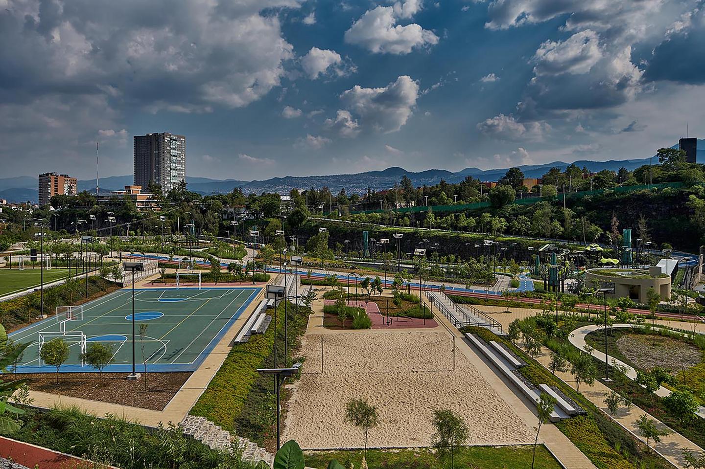 Cantera Park is a public space with an area of 26,534 m2 located in the Coyoacan Mayor’s Office, south of Mexico City, adjacent to colonies such as Santo Domingo that is currently considered a territory with a high crime rate, where the socio-economic level of the majority of its inhabitants is low. It is part of the "Planting Parks" project of the Government of Mexico City, through the Ministry of Works and Services (SOBSE).