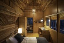 The structure of this cottage is a result of a rethinking process that modified and converted the existing simple caretaker’s quarters to minimize the footprint, by using reclaimed timber palette boxes as the primary material, which are also the salient features of the project. The leftover strips of timber during the construction process are reused to create a unique screen of handmade timber boxes along the side of the cottage. Careful detailing and effective reuse of timber from used shipping palette boxes are gestures of sustainable and humane design, adds value to the cottage and creates a distinctive identity.