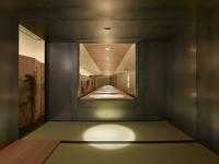 The Iron Tea Room is located in the Tokyo offices and gallery of Charley, a company that designs and sells zakka, which might be loosely defined as everyday items with style. The tea room includes a seventeen-meter-long table placed in front of a long, folding room partition printed with images from Hasegawa Tohaku’s Pine Trees screen. Although the client did not directly bring up zakka or Japanese style in discussions, we felt that these were the themes of the gallery and therefore incorporated them into our design proposal.