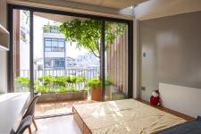 The floor plans are designed with the circulation core at the center and main spaces at the front and rear. The 3.5-meter setback forms a courtyard at the front while a bike and bicycle parking area is located at the rear, next to a backyard. The front and rear voids engage sufficient natural ventilation and daylighting into the rooms. Rustic and natural-friendly materials such as exposed concrete ceiling and terrazzo floor are harmoniously combined with recyclable wooden joinery and glazing.