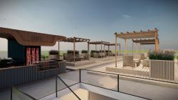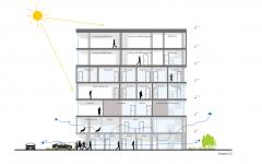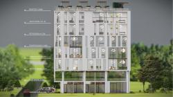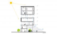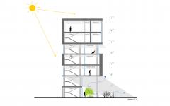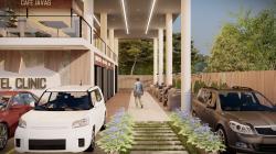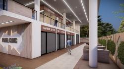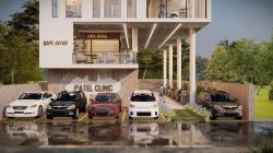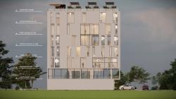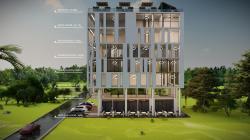 The project area is located in Kampala, the capital of Uganda. Plot area is 435 sqm. Plot dimensions are 15 m by 29 m. Main road side dimension is 15m. It was requested by the client to build a commercial function on the ground floor and a clinic on the upper floors. Plot dimensions are narrower on the ten fronts, and the plots are deeper longitudinally. For this reason, fewer commercial spaces are obtained when shops facing the main facade are built. This situation was desired to be overcome by evacuating the arena on one longitudinal side. The 2 storey high area was evacuated from the building and commercial shops were oriented towards this area, resulting in more commercial space along the longer plot. With its fast life cycle, Kampala hosts new constructions every day. In this crowded country with a population of 50 million, the need for buildings with social areas is increasing. This 2 storey high area was designed as a semi-open seating area for cafe and restaurant units and contributed to the ground floor relationship of the building. On these floors, there are general polyclinics, dentist units and management offices.B uilding is designed as 1718 sqm totally. 7 stores are designed on ground and first floor totally.5th and 6th floors are designed as apartments for doctor usings. There are 6 apartments totally on last 2 floors. Vertical circulation in the building is provided by 1 staircase and 1 elevator.The floor heights have been made as 350 cm and the maximum height of the building, which consists of ground 6 floors, is 24.50 meters.