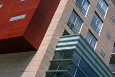 All facade covering elements are hanged, attached with screws or staples, making them completely detachable. All these creates a thermo-meteorological acoustic barrier and in consequence this is very energy efficient building. At the same time, this system facilitates façade maintenance and replacement and a convenient access to hydraulic and sanitary installations that go through along the perimeter of the building.