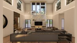 The villa is located in Eldoret, Kenya. The 2-storey villa is located in a large garden. The interior designs of the house, whose architectural project was done by another office, were made. The villa, which has a classical architecture outside, has an interior design with modern lines. The living room is 2 floors high. The amount of daylight has been increased by opening a window on the fireplace in the living room. these windows are opened in different proportions. Circular lights are designed on the floor of the 4 columns in the entrance hall. stair steps are illuminated with linear light and this lighting is continued on the wall. 2 children's rooms are divided into two in the middle with a 180 cm high divider panel. In this way, privacy was created for each child in the same room instead of the two children seeing each other all the time. Visual continuity is ensured by including the dressing room in the master bedroom in the master bedroom. The master bathroom, which is separated by glass, is also visually included in the master bedroom. In the kitchen, linear and diagonal linear lightings were designed according to the position of the paddle box, and it was tried to achieve a ionic placement in the space. An arched niche was created for a 3-year-old girl to feel psychologically more comfortable on the bed in her room. In the private lounge, the fire place wall was continued on the ceiling and on the opposite wall, emphasizing its position in the room. In this room, a billiard table is designed to host a different activity.