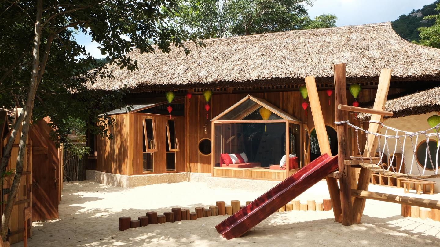 Kids club and playground, with indoor games such as ballroom, slide, wall climbing, art and craft, yoga room, media room.. outdoor games such as splash, swing, climbing frame, nest combination of activities, trampoline, swing... The game combination creates a continuous movement chain for children. There is also a planting garden, in order to organize activities on cultivation and supplement knowledge about plants for children.