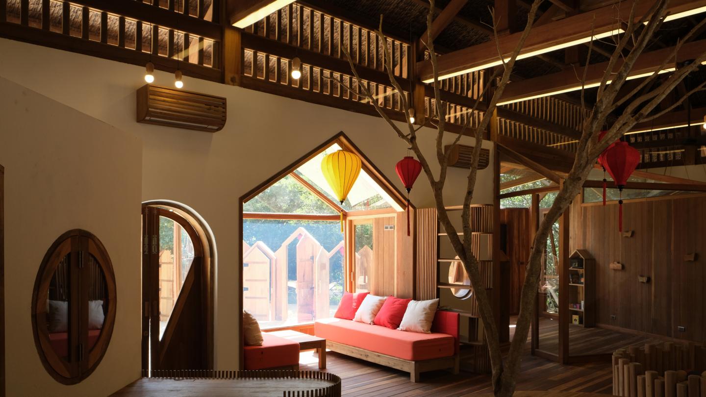 Kids club and playground, with indoor games such as ballroom, slide, wall climbing, art and craft, yoga room, media room.. outdoor games such as splash, swing, climbing frame, nest combination of activities, trampoline, swing... The game combination creates a continuous movement chain for children. There is also a planting garden, in order to organize activities on cultivation and supplement knowledge about plants for children.