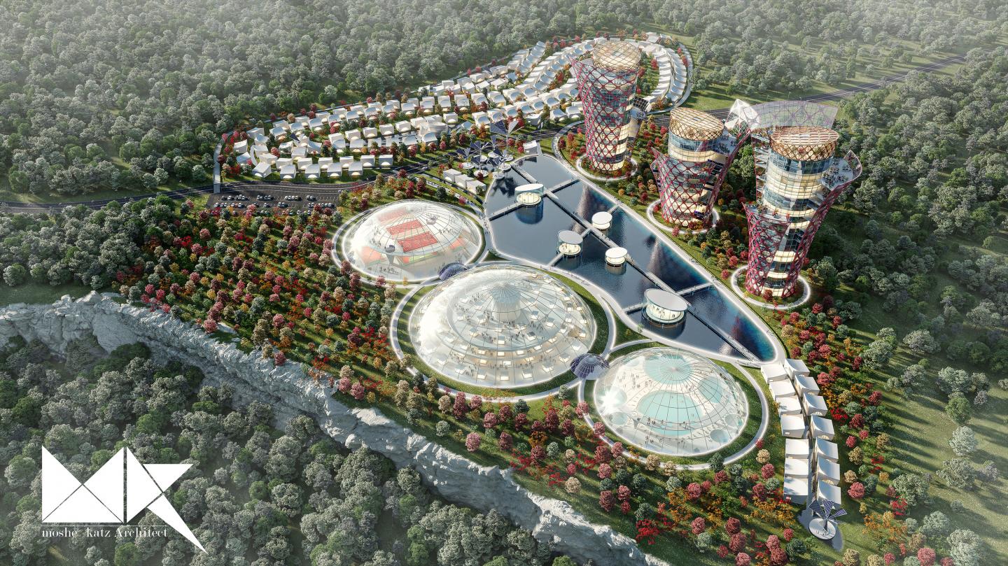 our new project: "Eternal Bloom" 200,000 sqm eco-city complex in Varna, Bulgaria. Inspired by the local rich nature, colors, fauna. Freezing the most beautiful moment in nature (bloom) where the dynamic structure opens up towards the sky, emphasizing the light, rich colors and textures.3 Glass domes for commercial/recreation purposes (open 24/7×365 days.) Hotels and residences, central Lake as "water square", cultural parks and gardens with open sky activities, all facing the sea. The project is a green, smart city with mixed used spaces for the local and visitors from Varna city. The curved lines of the buildings open up towards the sky as any flower would in its bloom. the vivid colors and textures are inspired by the rich bulgarian nature and fauna. The city and the whole development id built around a central lake with rivers flowing, connecting all the site with waterside public paths. Open parks and gardens, water squares for public meeting points, all facing the horizon of the sea and varna's beaches. The design concept is a combination between natures magical expressions and the ancient local culture and building design language. The Eternal Bloom eco city project is currently still in development and planning phases, awaiting different approvals. The Project is trying to express the beauty of natural phenomena in different forms and shapes, the facades or material choices, colors and location of the buildings are all defined by the unique situation of the site and its views.