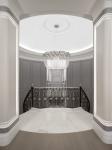 The beautiful ground stone mosaic go match with the crystal chandelier on the dome. The stone wall in the living room embedded light which decorated with golden line. Different materials work together, make this place comfortable. Each suit room has bathroom. The warm orange color makes the room happy and eye-catching. What amazing home.
