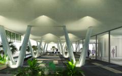 The sinuous lines of the building will be an instant landmark, providing a modern approach as to how architecture and nature can co-exist in an urban tropical landscape. Lifting a building over stilts frees the ground floor for the circulation of people and garden areas generating 1600 square meters of open space. This fundamentally modern solution has been chosen to promote free spaces with a stronger connection between the public sphere and the building's private spaces. The free design of the layout is achieved by creating an open plan, freeing the floor plan from structural conditioning so that the partitions and internal spaces of the building become more flexible and integrated.
