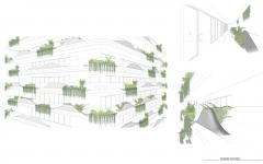 A rooftop offering additional living space, spatial flexibility, increase garden space, meeting space and improved circulation for inhabitants. The top master layer is articulated by metal frames that create a horizontal band running the perimeter of the façade and excavate the mass of the building with large planting terraces.