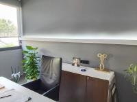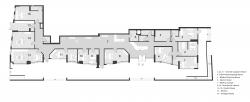 It is possible to divide the plan in half from the reception area. The right side is reserved for the offices of doctors who rarely see patients and management functions. The left side of the plan is for more dynamic functions of the clinic.