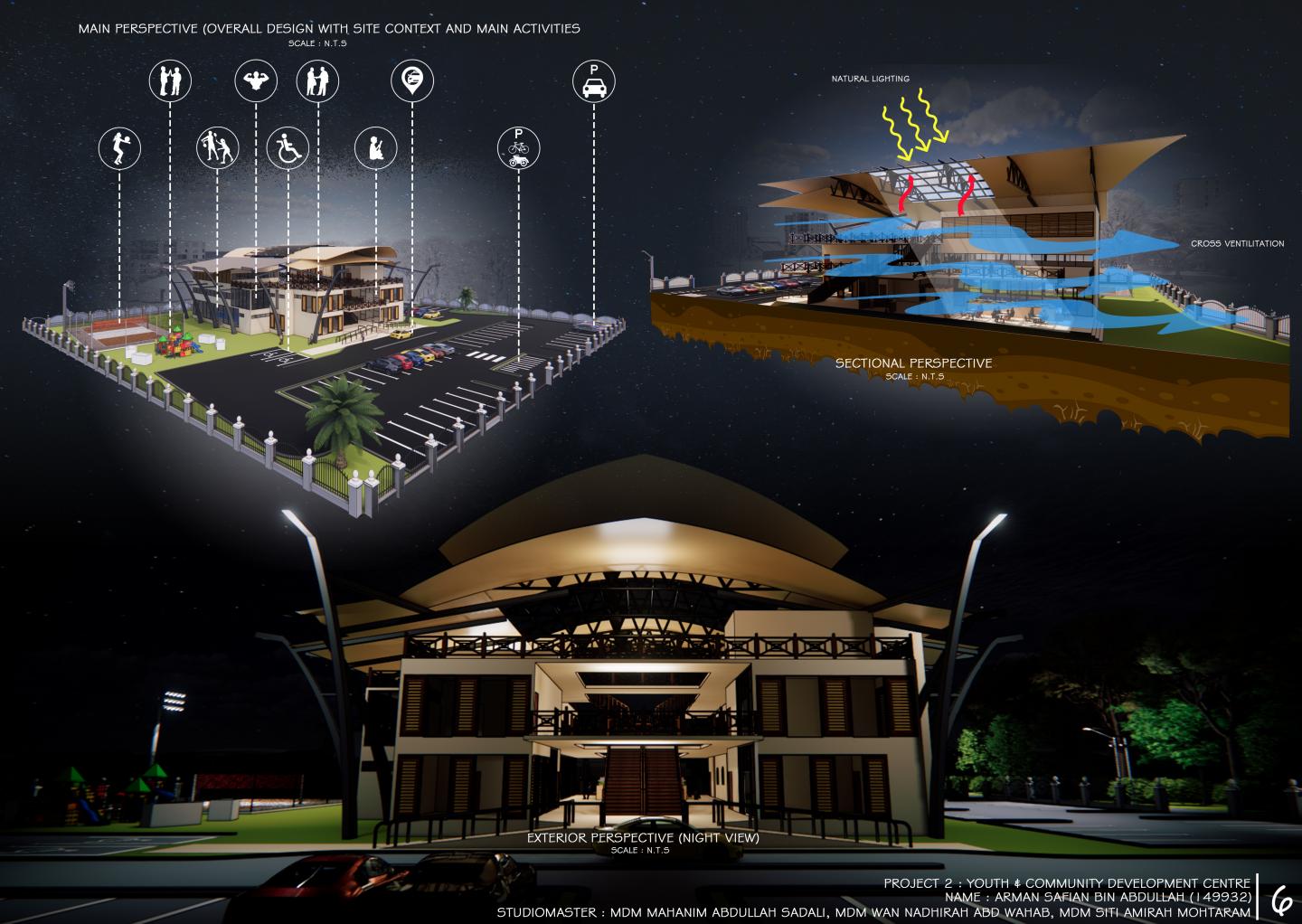 Youths centres are facilities designed to provide a safe, informal and supervised environment for young people, they accomodate unstructed social interaction among different age groups and provide the space to offer more structed acivities. By giving youth the opportunity to take part in recreational and cultural activities or vocational counseling, these centers help them develop their physical, social, emotional and cognitive abilities and to experience achievement, enjoyment friendship and recognition. Youth in a country is the most viable and potential human resource not only in population structure but also in social structure.They should be given the appropriate space and opportunity to exercise their talents and knowledge for the movement of society in a positive progress and anurban public space that have every possible facility for the growth of the urban youth in every sector of life starting from art and creativity, sports and athletics, technology and entertainment to loving the Mother Nature. This paper will go through the extensive study of what the youth wants and demands from the present society and how they are growing up in the present world. The sole purpose of the paper is to establish the fact that every youth needs a space for themselves where they will be guided in the right path. Moreover, urban youths need it the most since they are the most vulnerable and susceptible to theworlds every treacherous events and ideas and hence need the place where they can do everything to accomplish their goals and success with a positive competitive mind. Therefore, the paper will analyze the youths mind and culture and propose the required program for the dedicated urban space that will help the youths to devote their time and energy at a positive sector. The design concept of the building is “rapport”. It bring a meaning of unity, oneness and indicates harmony among youth and community. It imparts coherence of the spirit and integrity in one space through activities done together.
