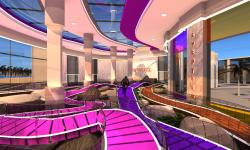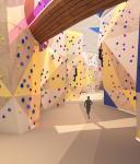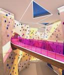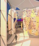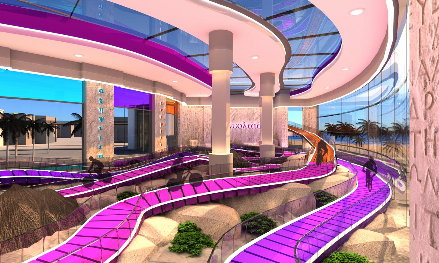 - the climbing hall zone is connected to the biking hall through the biking lane that penetrate the climbing hall and penetrate its walls in a circular way