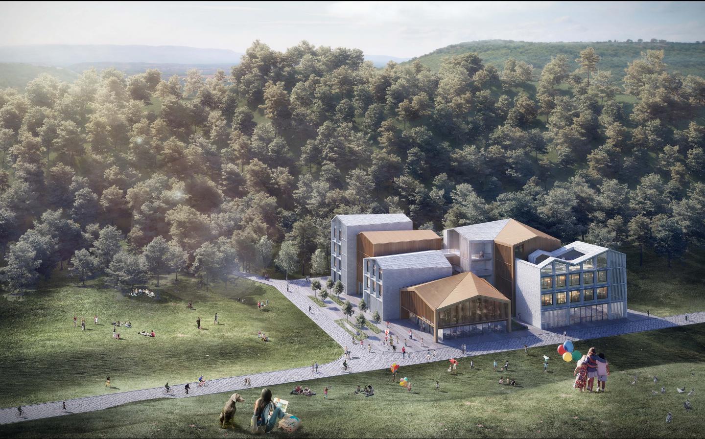 Lin’an Valley of the Wind School is located on an open site among the grassy hills in Lin’an District, outside the City of Hangzhou, with the goal of creating a basecamp of outdoor activities for the young students. The site is in the vicinity of large area of beautiful green belts and common open spaces. The north of the site sits on hills, with a local road planned around the south to the west.