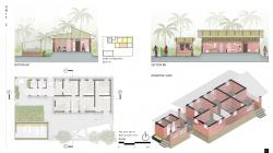 The master plan is designed based on the consideration of traditional and contemporary settlement patterns. The planning allows safety against future human-wildlife conflicts as well as prevents irregular expansion with the help of bio-fencing along the periphery of the settlement. The cluster design is inspired from traditional cluster pattern. It is based on typology mixing and places around a central court with a tree locally called as Katte. The core house is inspired from existing house forms with some modifications adaptable to the context and user. The user decides other than core house part- what to build, when to build and how much to build. The incremental nature allows diversity and to create individual identity different for each house depending on the user’s choice. The material palate for the house construction is selected based on availability and local craftsmanship. The Rubble stone strip foundation is supported with CSEB ring beam in the base. The existing mud bricks is replaced with CSEB blocks for better stability and resistant to rain. The timber roof is replaced with bamboo to reduce dependence on timber products from forest as well as reduce expenses. The construction technique is based on self-help approach for core house as well as for incrementation.