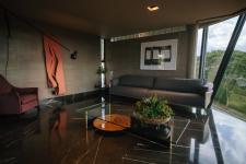 The multi faceted glass skin gives integration between interior and connects the external nature the architecture and design of this house built on top of the condominium with stunning views of the city of Nova Lima, Brazil.