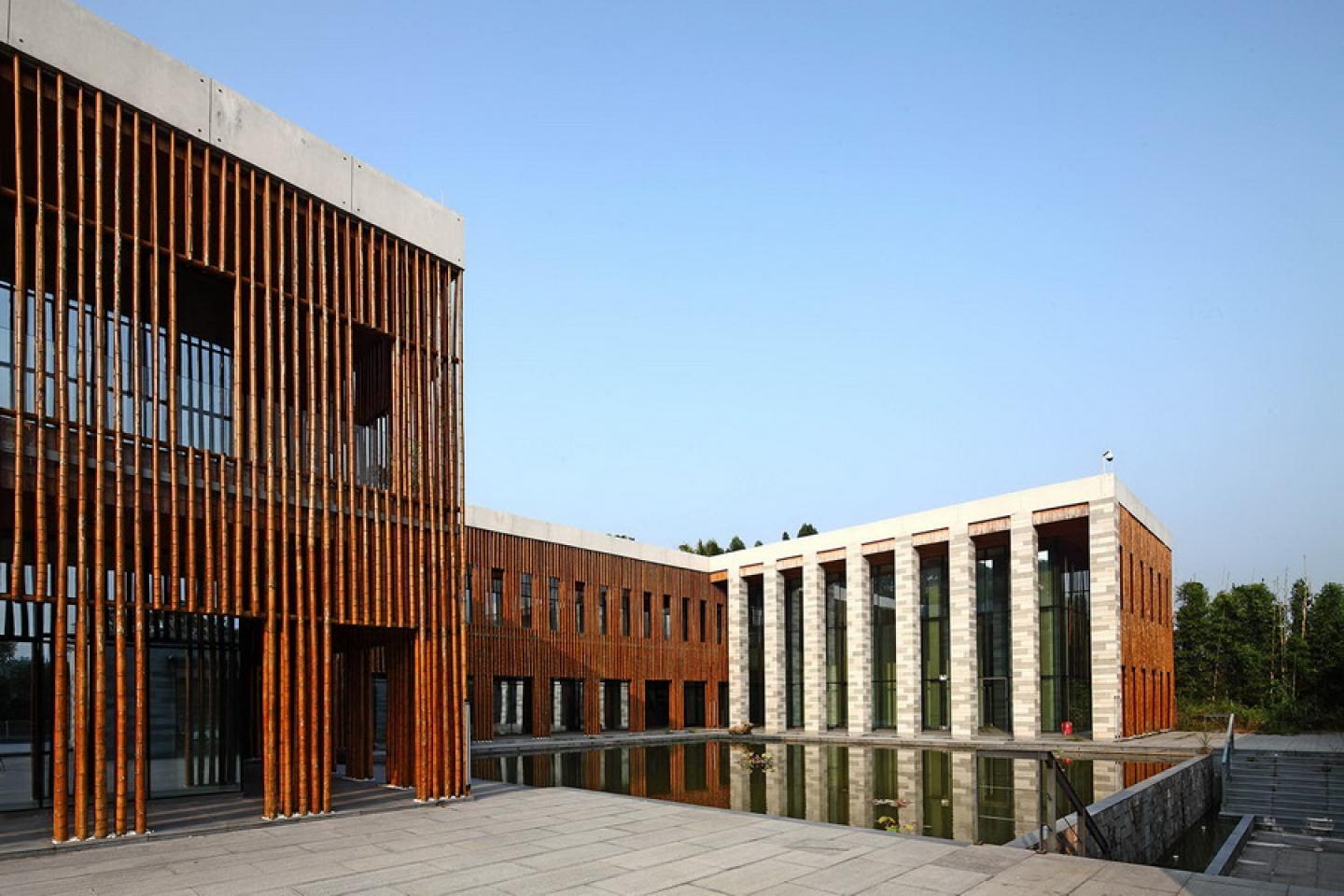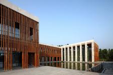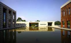 Chinese ink painting tends to capture the metaphysics of “Emptiness” from the mountain, and of the “Silence” from the water. The design philosophy of the project consistently focuses on these two spirits. The architect believes that “beauty of nature exists without words”; buildings therefore have no need to stand out from the environment. Spaces are arranged into layer by layer, intermingled with the surrounding landscape; and architecture is built hidden, by sinking the structure underneath the earth and slope. Roof turns green, façade turns inward looking, space turns sunken, mood turns unspoken. Meanwhile, bamboo screens, oyster shell walls, grey stone façade, and fair faced concrete mix up the spectrum of material pallet that further enhance the oriental ambiance of the architecture.
