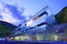 In order to reduce as much as possible the impact of a building on this very mountainous and forested site, the project tries to melt into the landscape. The ground floor area of 1500m2 has been established on the flattest part of the plot, on pilotis and facing South, thus taking advantage of the orientation for a more open view of the site.