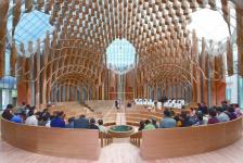 Similarly, using mainly for external coating reflective and transparent materials such as glass and polycarbonate, the building seeks to echo the image of nature and reduce the opacity of the built mass.