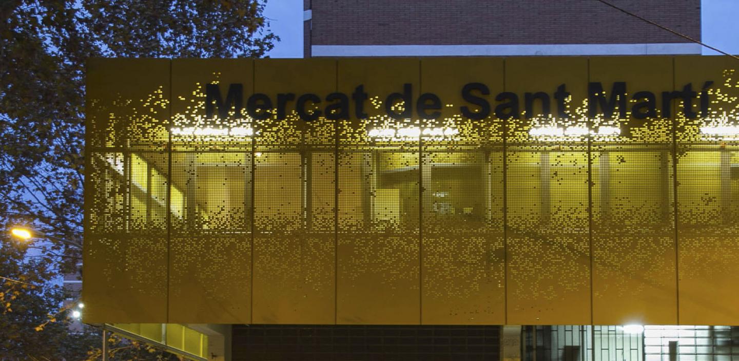 Reform of Sant Marti Market proposes the creation of a new facade that gives the building the representative image it needs, while wide access to communicate visually the commercial activity inside with outside and achieve an improvement in accessibility.