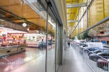 Hung facade micro perforated steel, separated from the existing facade, provides a new entrance porch protects office area from sun light during the day and converts in a new facade overlooking the main square. The large window allows visual connection outside and inside. A new stairs and ramps striated steel made accessible Market indoor levels. Inwardly existing sales positions are eliminated to expand access with the same steel material.