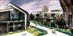Exterior Timber cladding design acts as a shell for the Housing Units.It helps to improve daylight quality ofinterior and controls climate at night.Moreover, the individual private area of each unit is defined with the help of this cladding design.A green environment for ground plane of the project siteallows free circulation of pedestrians.Each Housing Unit has its own car park and a transportation link will be provided by underground circulation.The project includes17 Large,56 Medium and 50 small Housing Units.