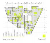 In this project the trapezoidal form of construction site, limits the building to a close- end from the northeast, and a long length in west side.