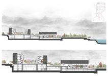 The spaces that do not need daylight are placed underground while the raised floors and terraces of those places created the open spaces between the building blocks. Detached entrances enable the access to these blocks with surrounding bicycle and vehicle roads thanks to the utilization of the topography.