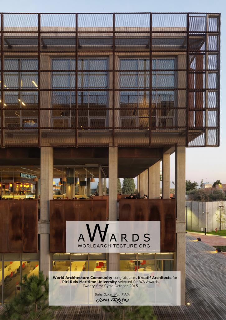 Piri Reis Maritime University by Kreatif Architects in Turkey won the WA Award Cycle 21. Please find below the WA Award poster for this project.