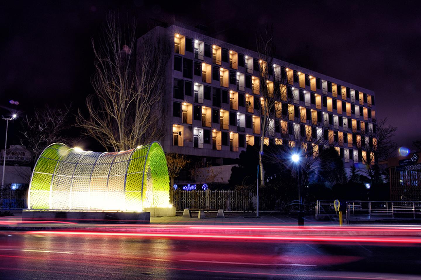 With the use of recycling bottle this pavilion appeared as a temporary landmark in the side of the most important street of Mashhad which forced the residents of the town to think about recycling and the important role of its process on their own city environment.
