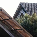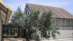 The project’s significance rests with its proposal to introduce an “unobtrusive novelty” in a bucolic landscape dotted with what could best be described as generic, uninspired summer homes. It sits within the tight grid of the olive grove and remains barely discernible through the think foliage of trees if it weren’t for its steeply pitched roof—a curious feature, one that leaves a gentle mark on the landscape and invites one to explore further.