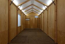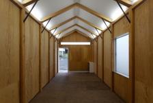 The use of this building caused the interior specs. The OSB floor with the insulation below was chosen by the stepping comfort. The larch plywood wall was to avoid the color assimilation with ping-pong balls.