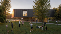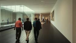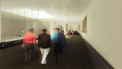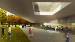 As a free floating prism anchored to the ground by a long glass base, the project is an investigation in horizontal space. Horizontal space is seen as the space that occupies park, an extension of green and vegetated space, and the museum galleries, an extension of exhibit space. The definition of horizontal, parallel to the ground, defines the project at its essence. The ground being the park space and the parallel being exhibit space. Continuity is established between the building and its context to create a cohesive experience for the subject where connectivity and openness characterize the space.