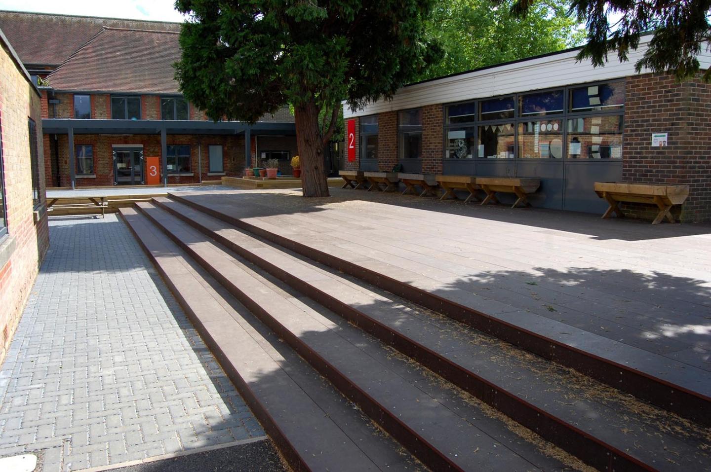 Within the canopies of the existing trees we proposed no dig construction, in line with industry best practice. Where wooden decks were proposed we adopted principals which minimised the likely impact on the roots of the existing trees. We adopted a number of construction techniques to provide the desired surface finish whilst minimising the impact of construction on the existing trees.
