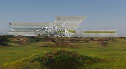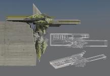 The solar cluster project acts as an underground seed vault, the rotating cluster of photovoltaic solar cells and holographic filteres glass panels act as a heliostat reflecting light underground aiding germination and protection against the harsh environment, sand turbines harness the kinetic movement/renewable energy of shifting sands to produce electricty for a sustainable building. This underground shaft acts as an inverted greenhouse which can also produce food.