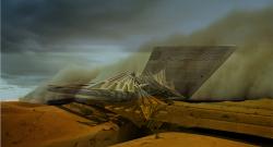 The solar panels are arranged in a pattern which rotate changing angle as necessary for maximum efficient output, sand turbines are framed within the tower which disperses seeds into the environment to slow down the desertification of the Gobi desert. The sand piles also retain the desert temperatures for longer and can be used as a type of energy storage as they take longer to cool. The second stage of research focuses on solar updraft towers which use sand as an insulation technique.