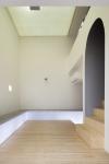 In the cube volume, the gradually elevated floors and the ceilings with their alternate rise, and the indirect sunlight from above and below loosen the tie of gravity. The interaction between the spiral movement and the gravity-free like spread of light leads the consciousness to the upward.